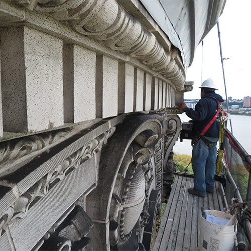 Columbia University wanted this faculty and staff residence restored to its original splendor. Known as the Colosseum, the 1910 building’s ornate brick masonry, stone, and terra cotta facade was deteriorating. SUPERSTRUCTURES’ solution: a restoration that reverses the damage through masonry replacement, crack and spall repair using micro-injection grout, repointing, and “dutchman” repairs.