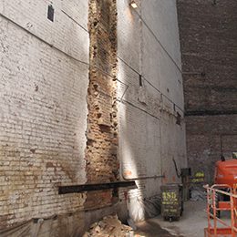 Opened as the Majestic Theater in 1904, the venue was renovated by BAM in 1987. The building’s facades are solid brick masonry with decorative limestone cladding at the Fulton Street facing facade. A 2015 renovation expanded the entrance lobby and provided new egress stairs for the balcony. SUPERSTRUCTURES was retained as the exterior restoration consultant to perform an analysis of the existing building envelope at the areas affected by the proposed expansion, including an investigation into an appropriate coating for the exterior walls, replacement of wood windows, and research and mock-ups for the removal of existing coatings at the front and side walls.