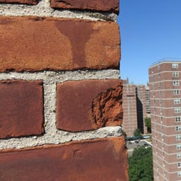 Completed in 1963, the Big Six Towers were designed by architect Frederick G. Frost. Actually comprising seven towers, the complex was built as housing for members of Typographical Union No. 6 – known in its heyday as Big Six. The development is now Mitchell-Lama cooperative housing. The towers range in height from 15 to 18 stories. SUPERSTRUCTURES conducted Local Law 11 (FISP) Cycle 8 facade inspections of the buildings. Subsequently the firm provided design and construction administration services for the requisite facade repairs. The scope included removal and replacement of cracked masonry units and repair of spalled concrete on exterior balconies.