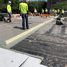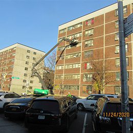 These two multi-building public housing developments in the Broadway Triangle section of Brooklyn comprise eight- and seven-building complexes respectively. SUPERSTRUCTURES provided investigation, design, and construction administration services to restore the buildings’ roofing systems and related rooftop structures. Restoration work included: concrete roof deck and vertical surface spall repairs; concrete parapet repairs, including coping restoration, interior concrete coating, and expansion joint replacement; and installation of a new liquid-applied roofing system, including flashing replacement or repairs and drain replacement. The project also included: coating of exposed steel shelf angles and lintels, side-mounted railing installation; bulkhead door frame, saddle, and hardware replacement; and door and window sealant replacement.