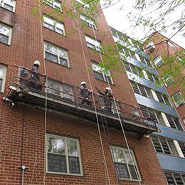 Cedar Manor (116-11, 31 & 51 157th Street) is a three-building complex of eight-story, brick masonry-clad buildings built in 1961. SUPERSTRUCTURES conducted a FISP Cycle 8A examination of the buildings, finding various unsafe conditions in need of immediate repair. Subsequent restoration work included: repair of cracked masonry units and masonry repointing; repair of spalled concrete; and replacement of steel lintels. The restoration also included removal and replacement of the roofing system and flashings. The replacement roof was an NVS system and bulkhead door saddles were raised to accommodate it. Existing drains were replaced in kind, new wearing surfaces were applied, and new guard rails were installed. SUPERSTRUCTURES provided investigation, design, and construction administration services.