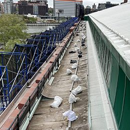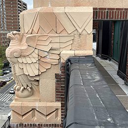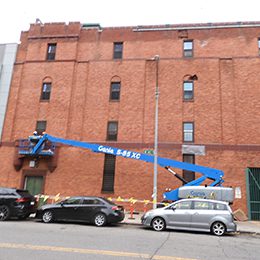 SUPERSTRUCTURES provided investigation and design services to restore the Fifth Avenue State Armory (Tachau & Vought, 1924). The entire south and east exterior walls of the Administration Building and Drill Hall are being restored. The scope of restoration work includes brick masonry replacement, terra cotta and stone restoration and replacement, spandrel level restoration, lintel replacement, and corner reconstruction.