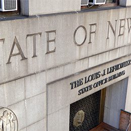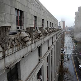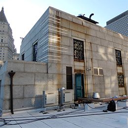 The Louis J. Lefkowitz State Office Building at 80 Centre Street was designed by state architect, William Haugaard and built in 1928. SUPERSTRUCTURES conducted a FISP Cycle 9 Critical Examination of the building’s envelope and provided design and construction administration services to repair unsafe and SWARMP conditions. The restoration scope included: concrete spall repair; removal and replacement of cracked masonry units; masonry re-pointing; stone sill replacement; stone crack, spall, and mortar joint repair; door and window joint sealant repair; and re-securing metal trim.