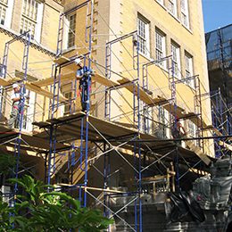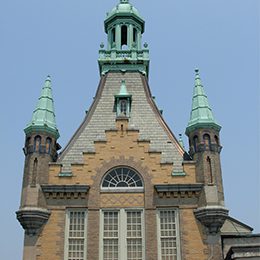 Newtown High School is a large secondary school in the residential neighborhood of Elmhurst in western Queens, constructed in 1921 and designed by C.B.J. Snyder in a Flemish Renaissance Revival style. The structural steel frame has terra cotta tile back-up, and the face brick masonry is laid in common bond. The exterior masonry, parapets, roofs, windows, and doors were found to be in fair to poor condition. SUPERSTRUCTURES provided investigation and design services for the rehabilitation or replacement of the deteriorated aspects of the building, including complete reconstruction of the four turrets on the main tower. The project was awarded a Lucy G. Moses Preservation Project Award for 2011 by the New York Landmarks Conservancy.