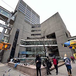 The North Building (Shreve, Lamb, and Harmon, 1941) is a 17-story, steel-framed academic facility in the Upper East Side Historic District. SUPERSTRUCTURES conducted a FISP Cycle 8C critical examination of the building’s brick masonry and limestone-clad facade. Restoration work to address facade deficiencies included: removal and replacement of cracked and spalled masonry; masonry repointing; mechanical anchorage of brick masonry and displaced stone; expansion joint replacement; and joint sealant replacement. The project also included: scraping and painting of steel lintels and spandrel beams, including removal and replacement of brick masonry, flashing, and weeps; and installation of new brick masonry, flashing, and weeps at existing shelf angles.