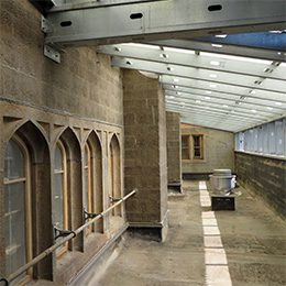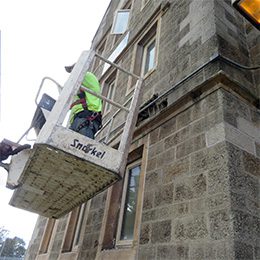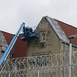 This medium-security prison in Ulster County was designed by Alfred Hopkins and constructed in the early 1930s. SUPERSTRUCTURES provided investigation, design, and construction administration services to restore the exterior of the campus’ 12A – N buildings. Restoration work included: replacement of spalled and deteriorated concrete masonry block; installation of stainless steel veneer wall anchors and horizontal reinforcement; repair of localized precast concrete spalls and injection repair of cracks; removal and replacement of spalled or cracked precast concrete units; and sealing of wall penetrations. The project also included: replacement of window perimeter silicone joint sealant; replacement, power washing, and recoating of damaged EIFS; replacement of facade masonry joint sealant; scraping and painting of rusted lintels, window frames, and sashes; and replacement of broken glass and polycarbonate.