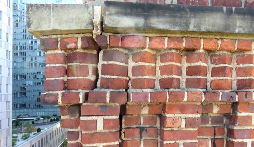 Whenever it rains or snows, water seeps into crevices, pores, and even micro-cracks in building facades and parapets. Unlike other liquids, water expands when it freezes. Cycles of precipitation at temperatures above freezing followed by temperatures below freezing expand the sizes of cracks, in a phenomenon known as "frost jacking." As buildings age, these expanded cracks can result in hazardous facade conditions, or become the source of leaks into the building interior.