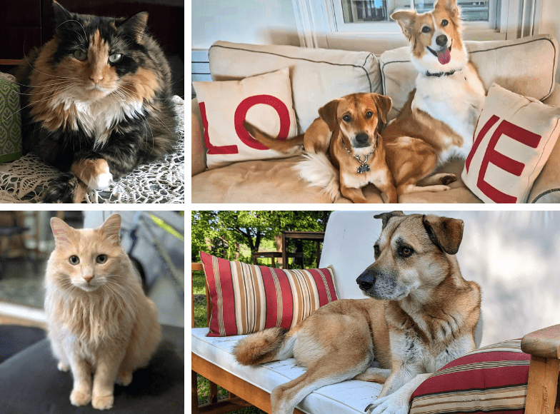 Clockwise from top left: Marius’ cat, Luna*; Pau’s dogs, Shira and Dauntless; Veronica’s cat, Mushi; and Eric’s dog, Matilda.
