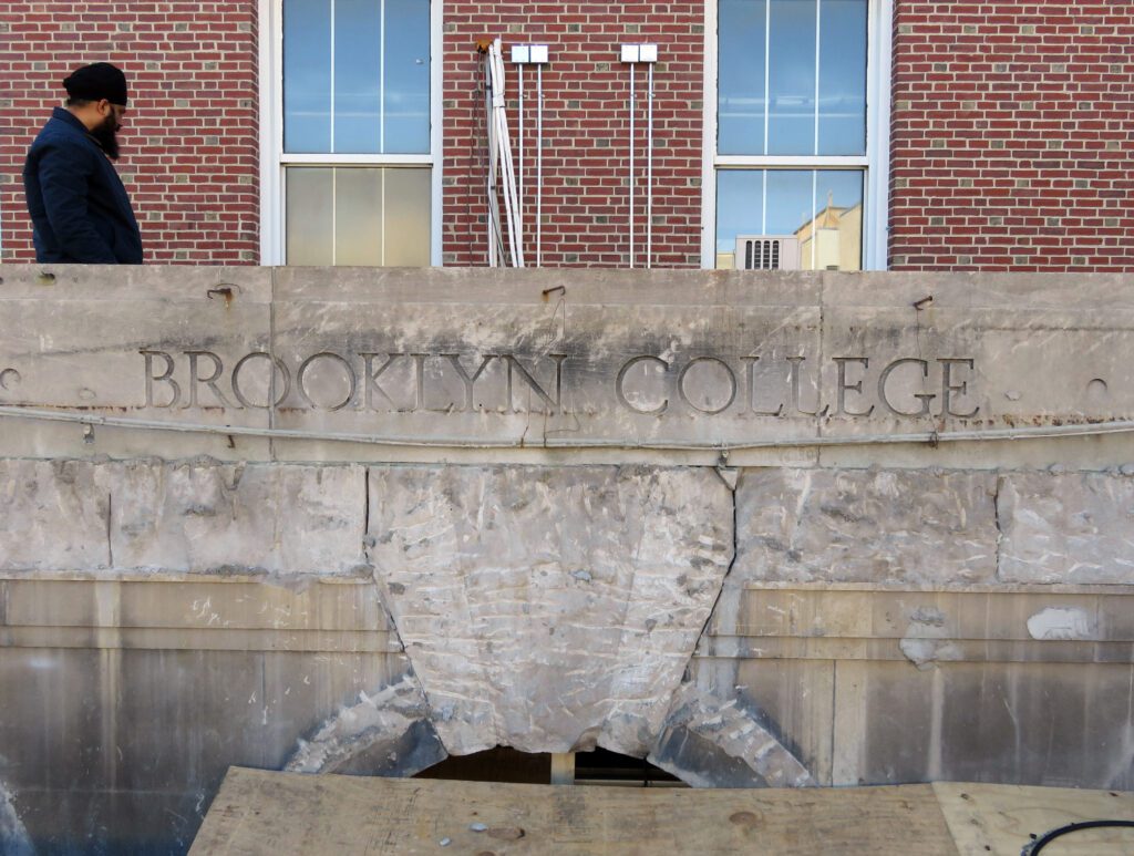 For example, in our restoration of the Carroll building at Medgar Evers College, removal of a later addition to the main entrance uncovered elements of the original building (constructed in 1908 as the Brooklyn Preparatory School). As part of our restoration of the structure, the CMU, split-face block, and stucco addition was demolished, revealing limestone ornamentation and the Brooklyn College lettering of the original entrance.