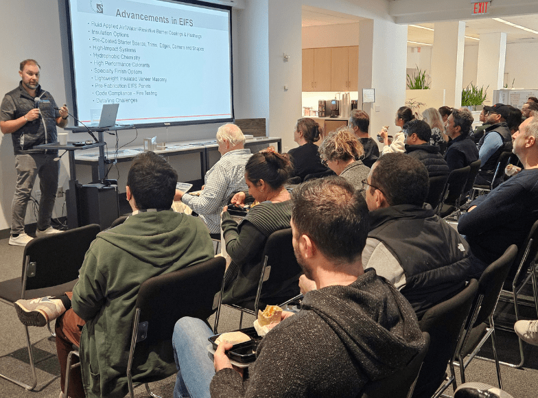 “Advancement in EIFS for Today’s Building Envelope Wall Design Challenges” was the subject of last week’s Lunch and Learn, presented by Perri Robinson of Tremco CPG. The SUPERSTRUCTURES team members in attendance learned about advancements in Exterior Insulation and Finish Systems (EIFS), earned CEUs, and enjoyed a free lunch in our presentation space.