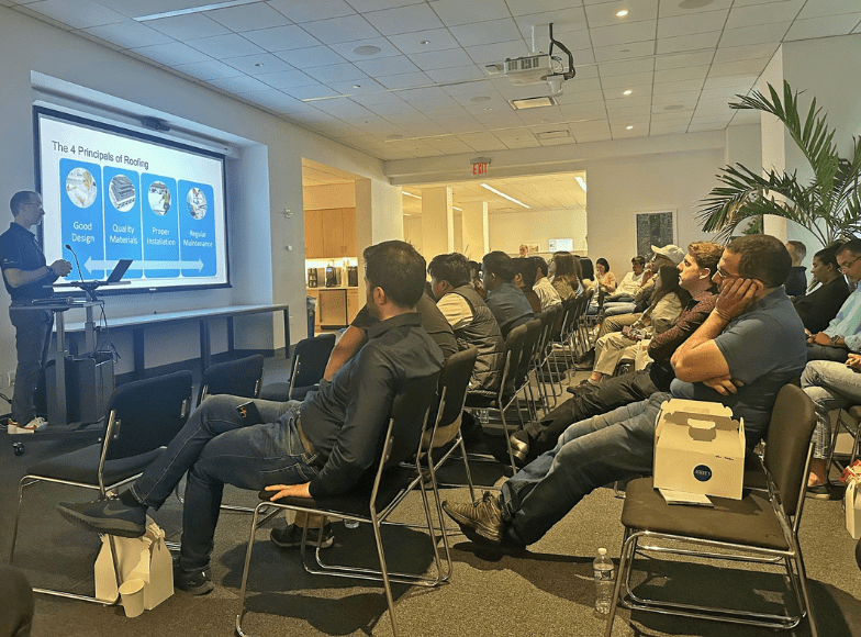 Our 2025 series of “Lunch & Learn” seminars continued last week with "The Ins and Outs of Reroofing" presented by Michael Popeck of GAF/Siplast. 60 SUPERSTRUCTURES team members expanded their knowledge of reroofing, earned CEUs, and enjoyed a free lunch in our presentation space.