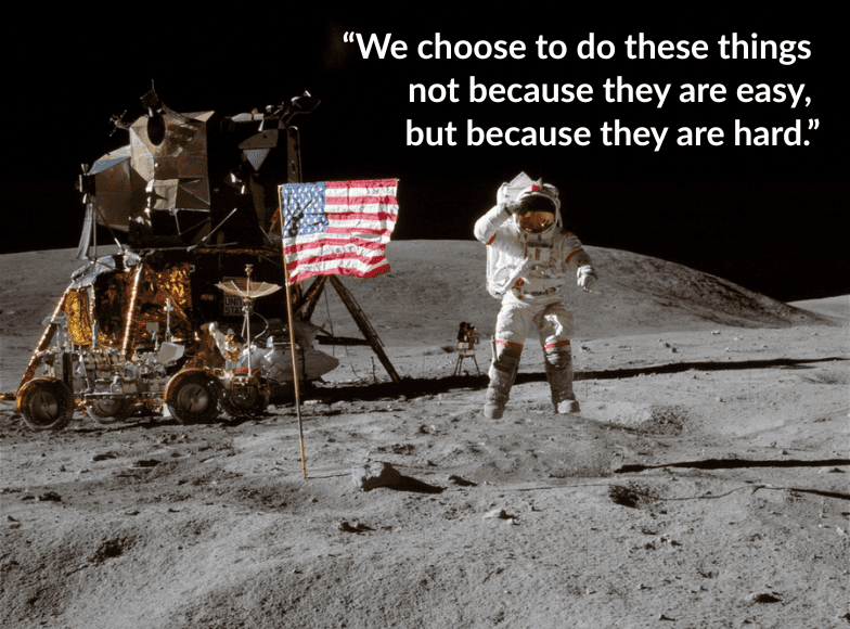 The next line in Kennedy’s speech is less well known: “because that goal will serve to organize and measure the best of our energies and skills.” We embrace that idea, too; each new challenge is an opportunity to learn and reinforce our confidence going into the next one.