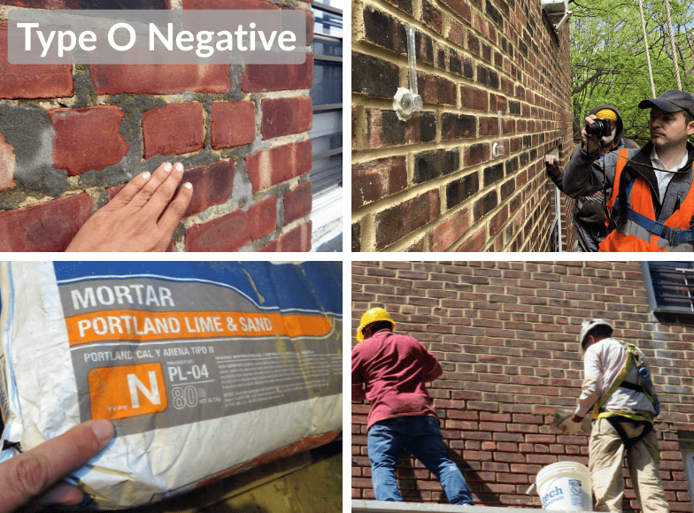 The remedy suggested by SUPERSTRUCTURES, subject to field verification, was replacement of the Type O mortar with Type N (which in any case is a more conventional choice for exterior applications).